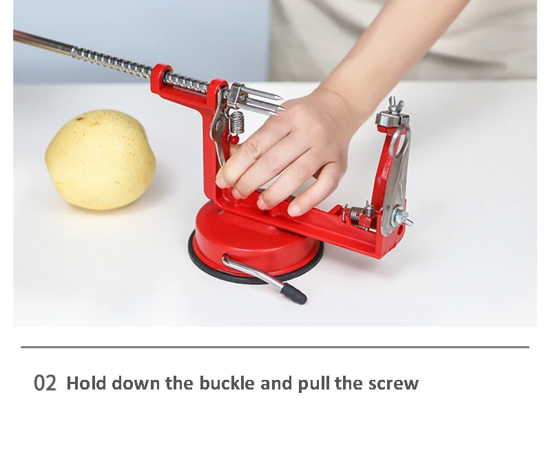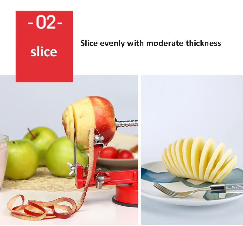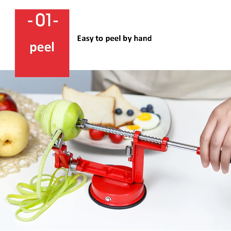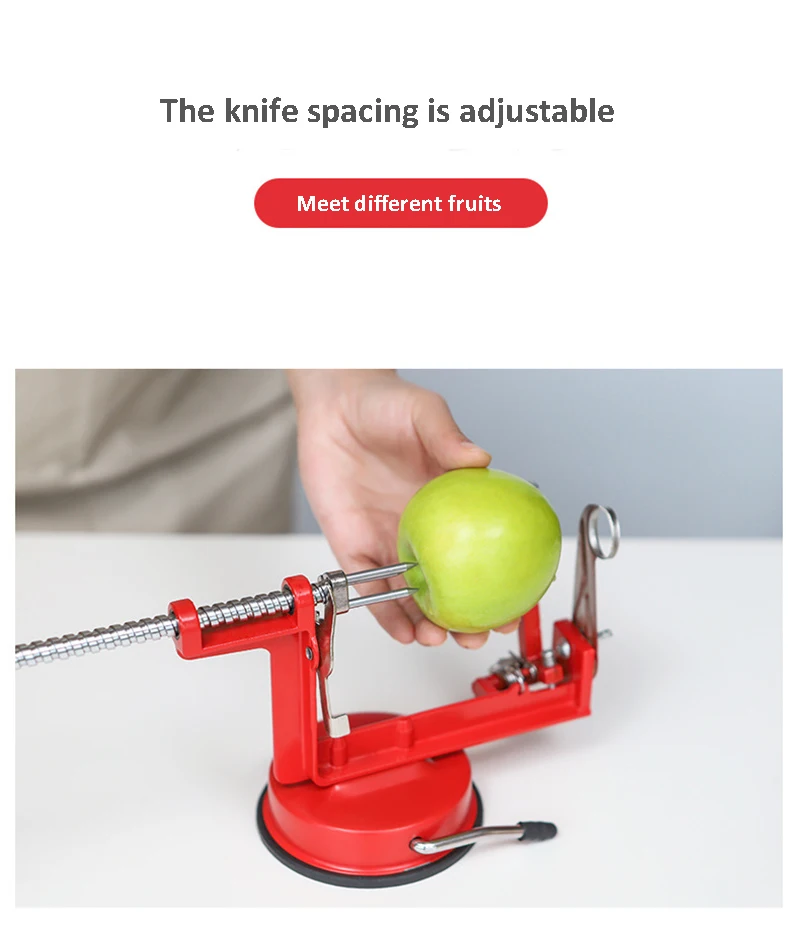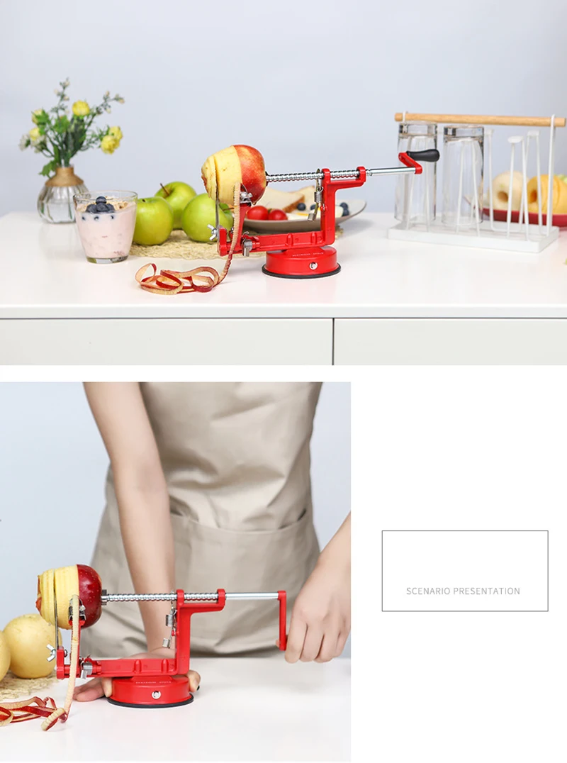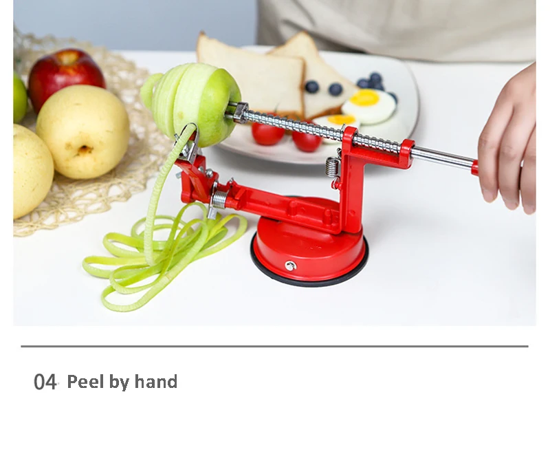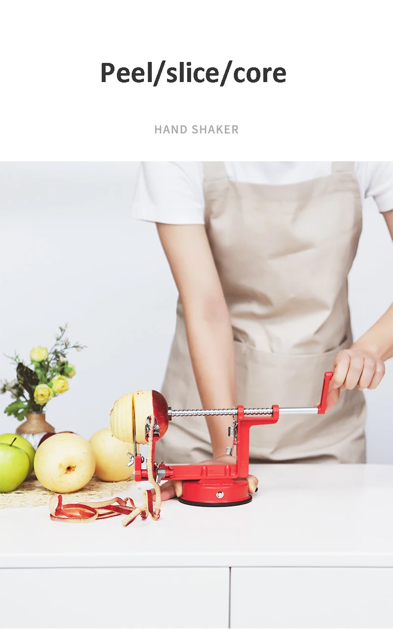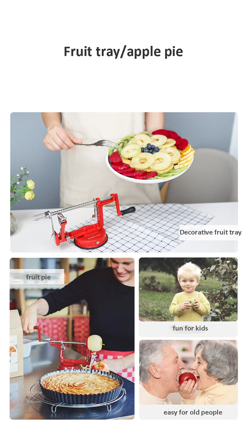 The peeling, core removal and slicing of apples can be completed in one go, saving time and effort and being easy to operate.